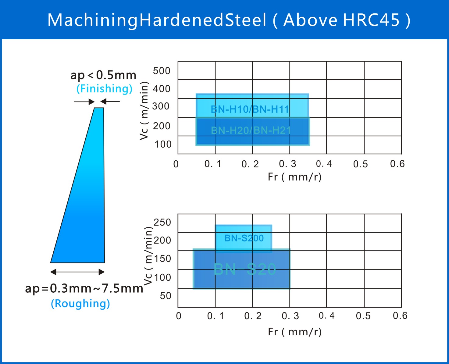 Specific for hard turning field, Halnn recommend 6 types cbnmaterials for reference, and already covered continuous turning to interrupt turning type, details as follows: