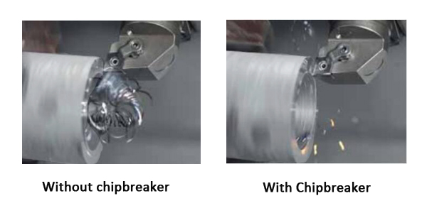 Different chips with same cutting condition by cbn inserts with or without chipbreaker